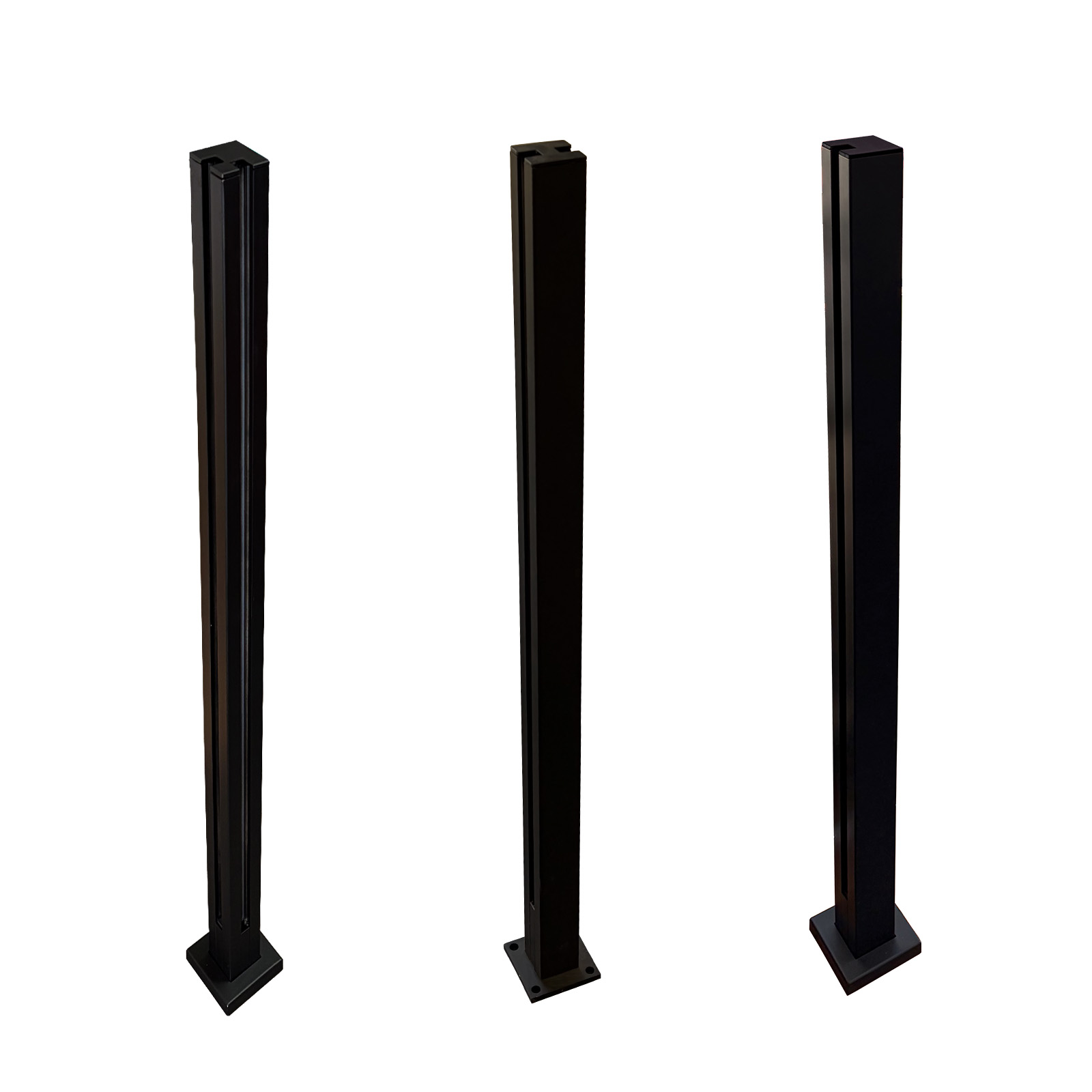 Aluminum Glass Railing Square Post with Spigot Slots and Base for Deck Balusters, Balcony, Patio, and Stairs – Suitable for 1/2″ Glass Thickness (ALU-SQP_-42-B)