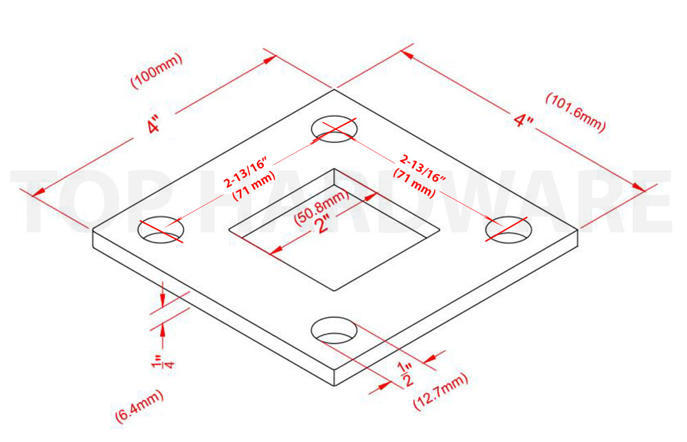 (BPS50100-E) Stainless Steel 316 grade 4″ x 4″ Base Flange Plate for 2″ x 2″ Post